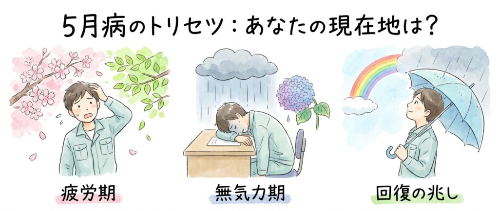 5月病の症状には、いくつかの段階があります。自分がいま、どの段階にいるのかを理解することで、対策も見えてきます。