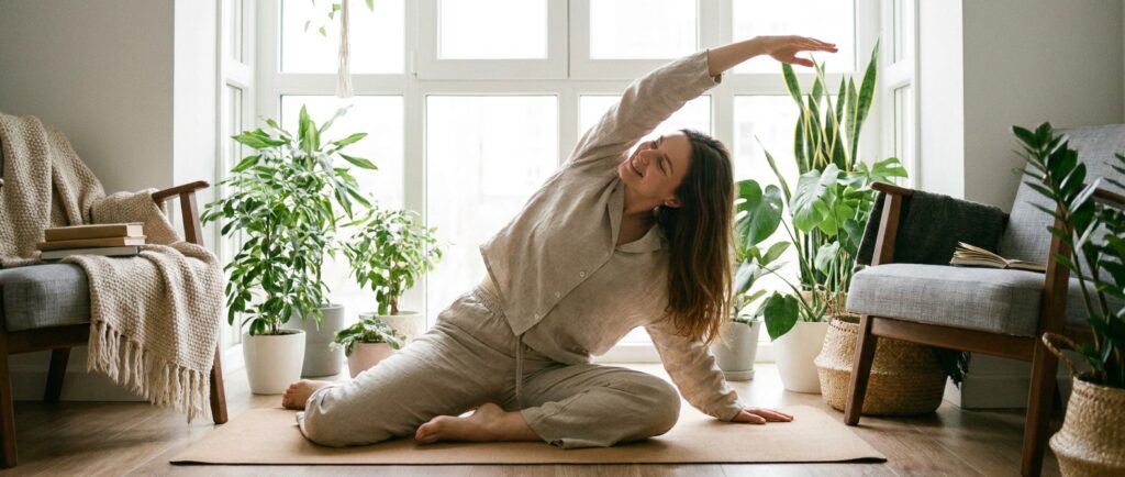 これだけで大丈夫。体を少しほぐすだけで、血流が良くなり、気分が少し楽になることもあるんです。